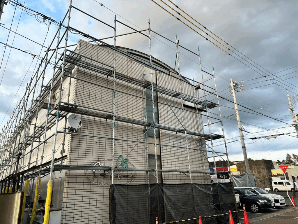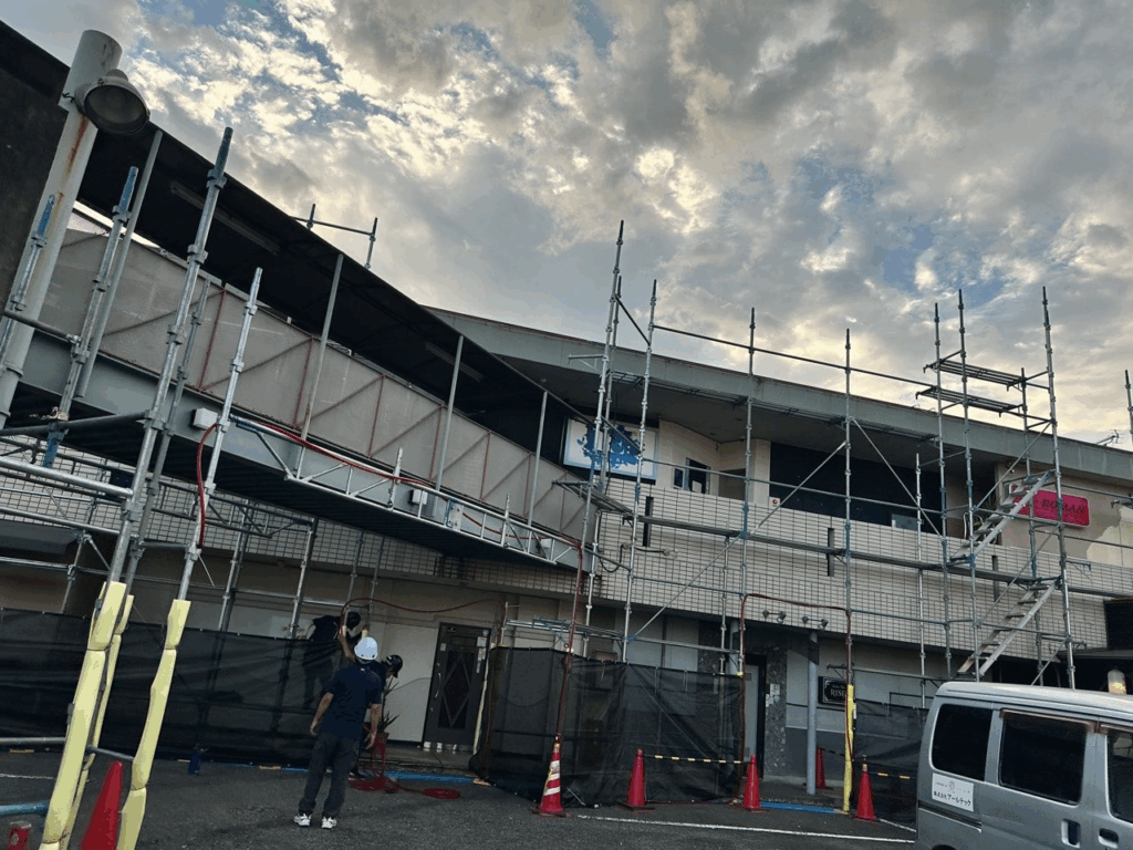 本日店舗足場の組立を行いました。
