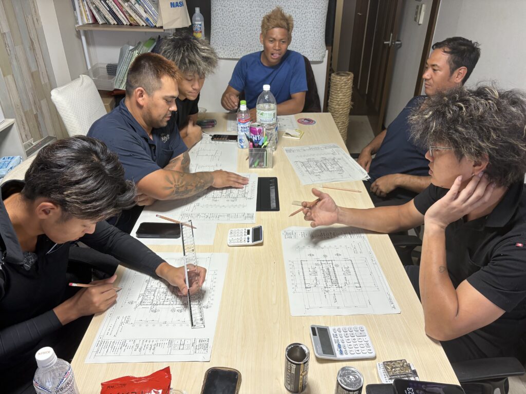 本日は事務所にて勉強会と会議を行いました。 新築の平面図、立面図を配布し足場寸法の出し方、材料の数出しなどを細かく学ぶ場としました。 その後社内状況についての会議を行い、各々のビジョンについて話し合いました。