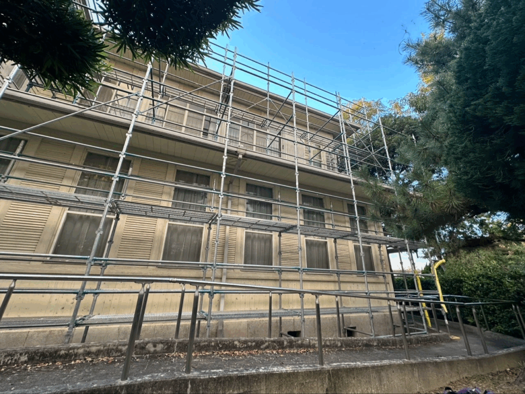 本日より大学校舎の足場組立を行っております。