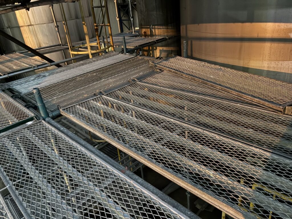 本日は工場内部への足場工事を行いました。