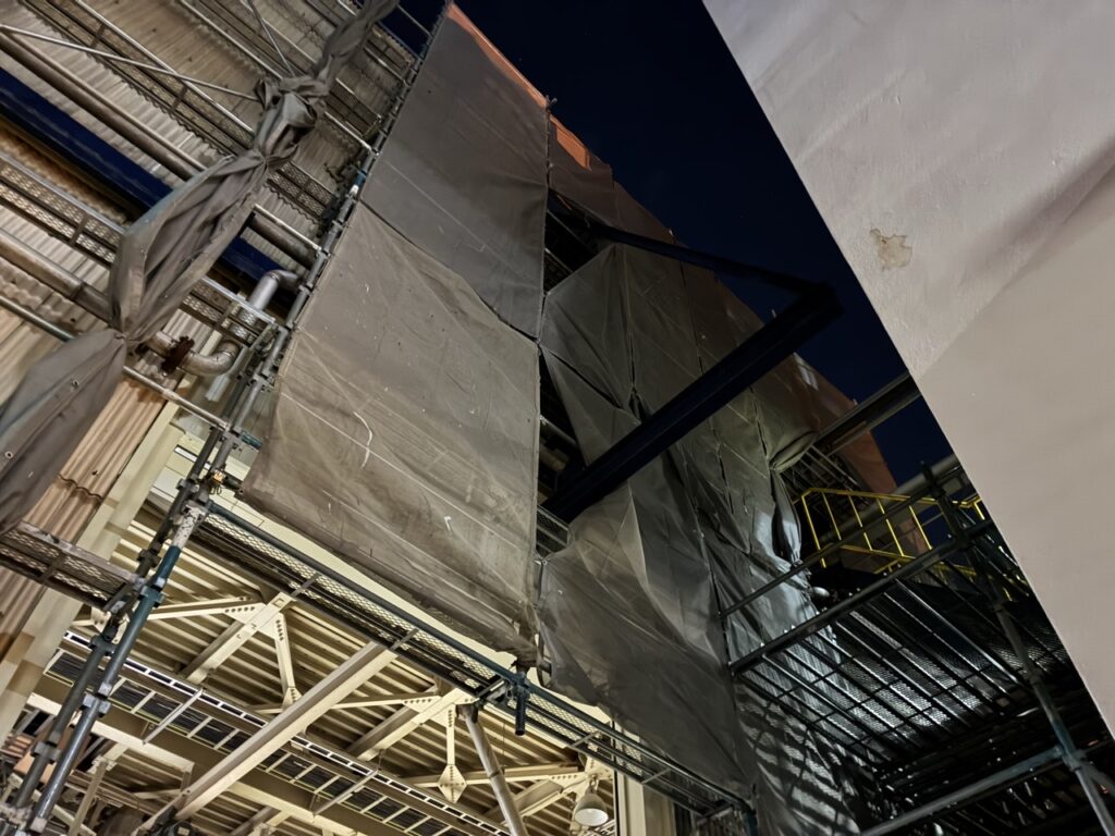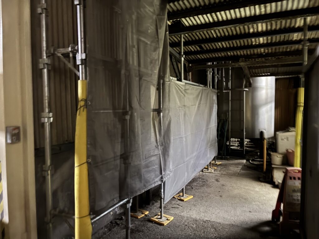 今回は普段より多くの配管があり、多く割を入れることで配管・建物に接触しないようにしました。