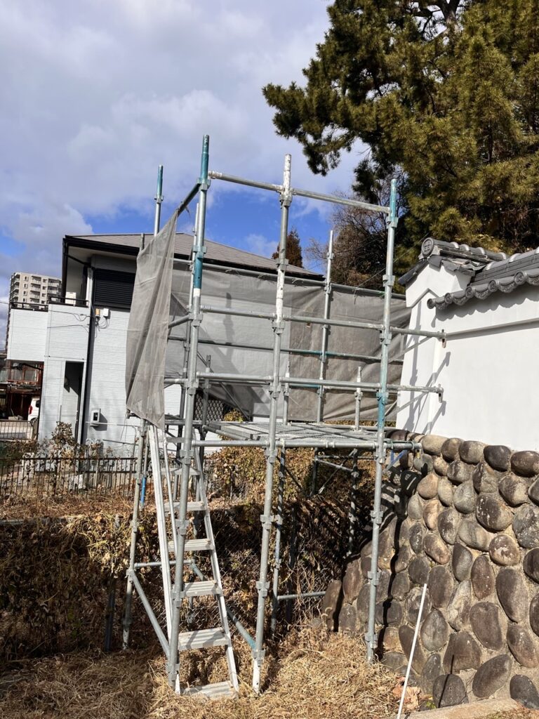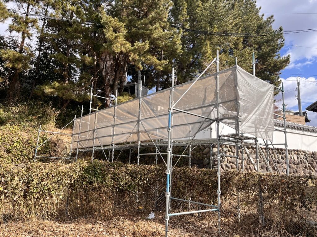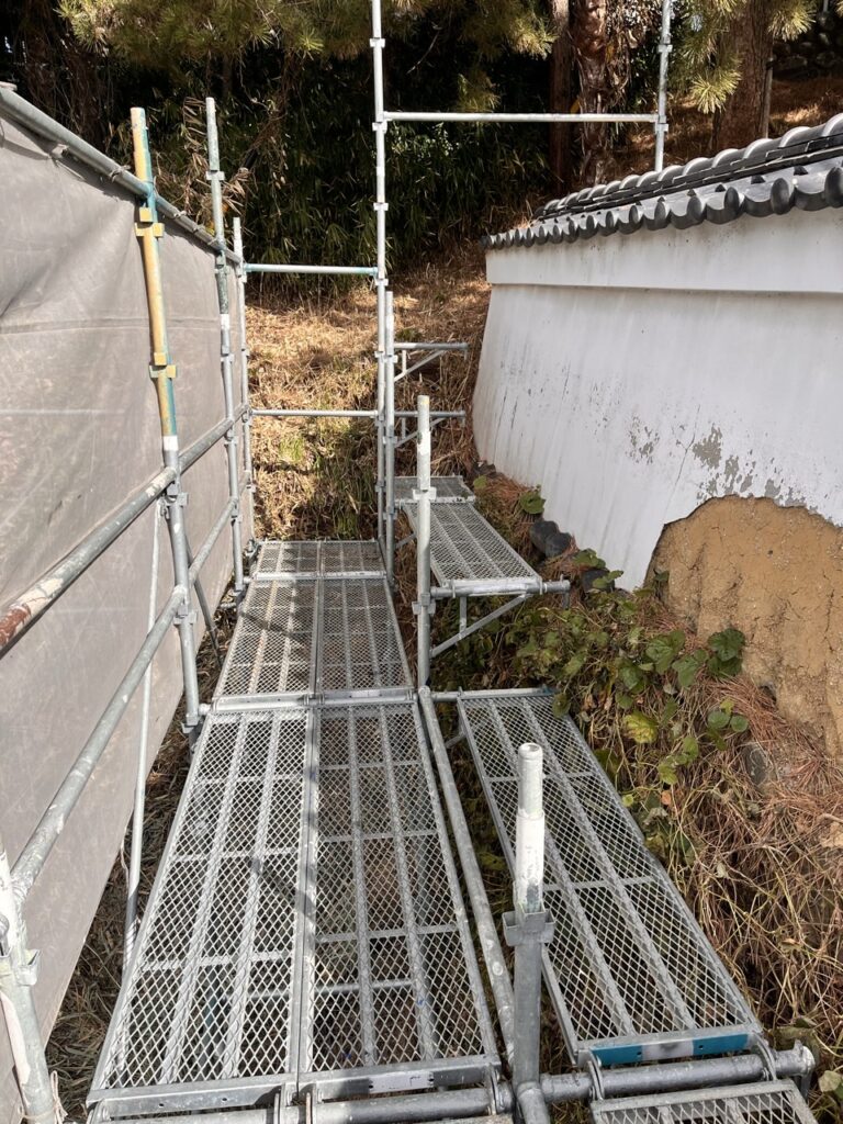 本日は寺院の堀部分への足場工事を行いました。 今回