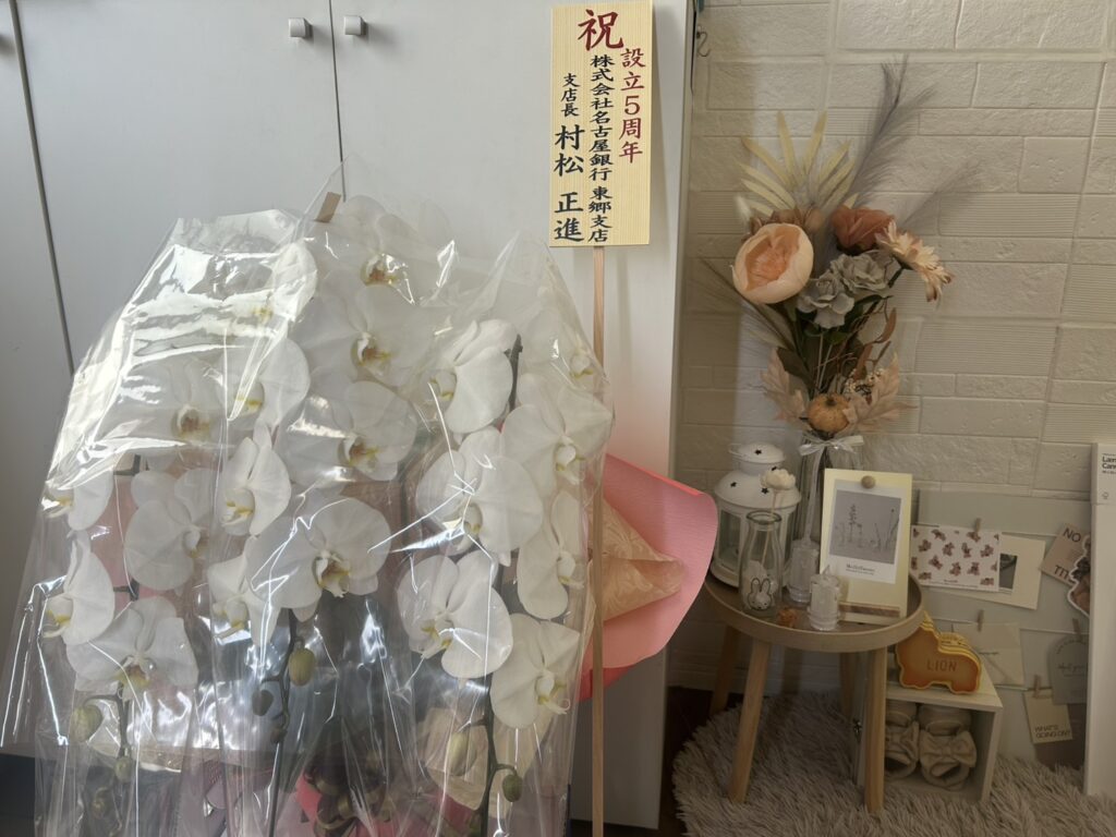 2026年2月をもちまして、統新建設は5周年を迎えることができました!!日頃より大変お世話になっています、名古屋銀行東郷支店様から祝花を頂戴しました。これもひとえに日頃より社員一同、お取引先の皆様、弊社を支えてくださるステークホルダーの皆様のご支援の賜物と深く感謝申し上げます。